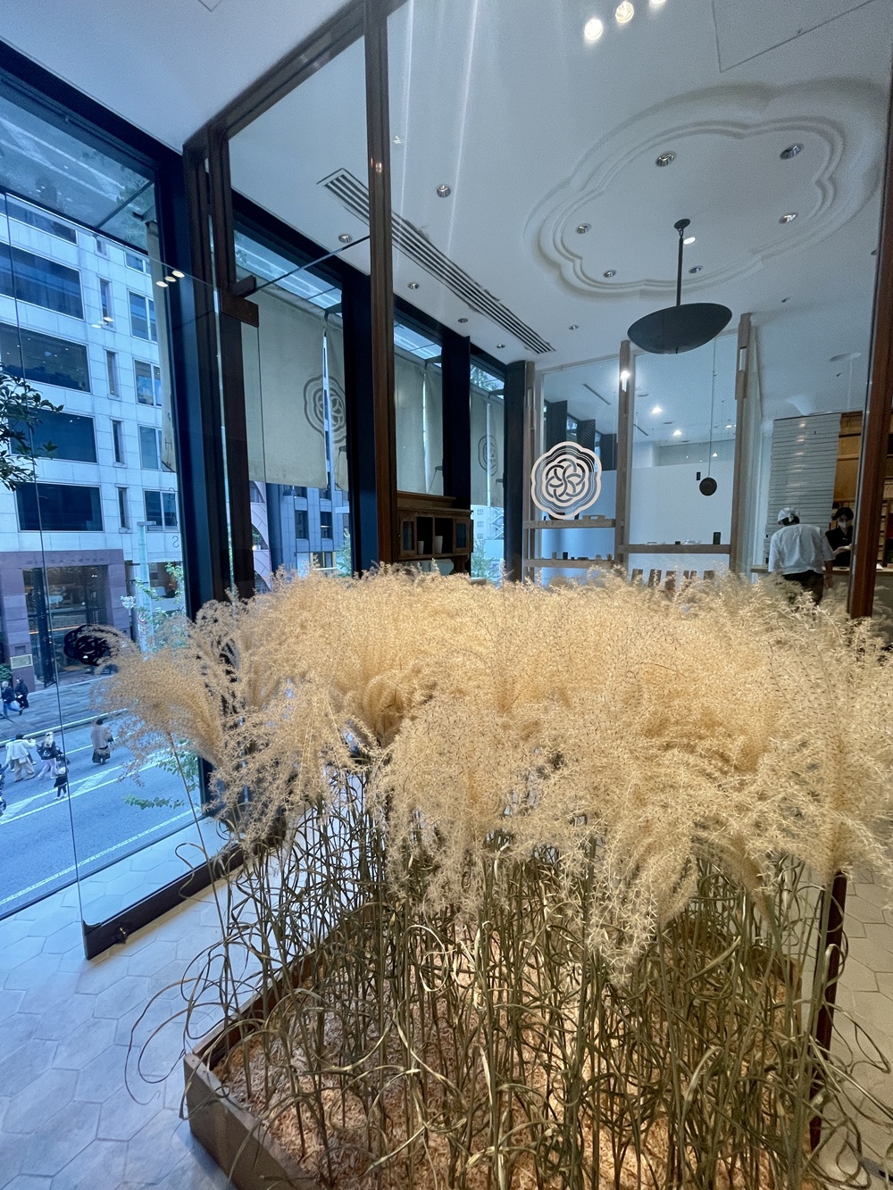 季節ごとに入口の設えが変わるのですが、今回は秋を感じる“すすき”が飾られていました(写真は銀座の店舗です♪)